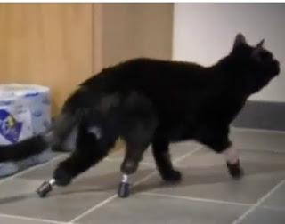 Numa cirurgia pioneira, realizada na Grã-Bretanha, um gato amputado recebeu duas próteses nas patas traseiras, devolvendo ao animal parte dos seus movimentos naturais. Veja o vídeo aqui.